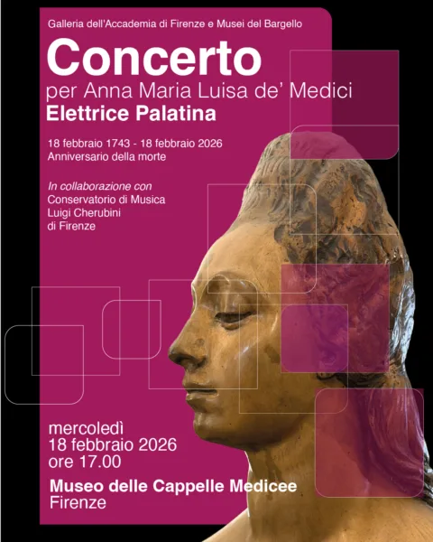 Per rendere omaggio alla sua figura, nella giornata di mercoledì 18 febbraio sarà offerto l’ingresso gratuito al Museo delle Cappelle Medicee a tutti i residenti nel Comune di Firenze. Inoltre, alle ore 10.00 e alle ore 16.00, è in programma la visita tematica Celebrando la Principessa saggia. La visita, a cura del personale dello Staff del Museo, approfondirà la storia e le vicende dell’Elettrice Palatina e si svolgerà in lingua italiana. Per partecipare non è prevista la prenotazione: i visitatori interessati potranno rivolgersi direttamente al personale del museo. I gruppi delle visite si formano all’ingresso del museo, fino a esaurimento dei posti disponibili (massimo 10 partecipanti per ciascun turno).