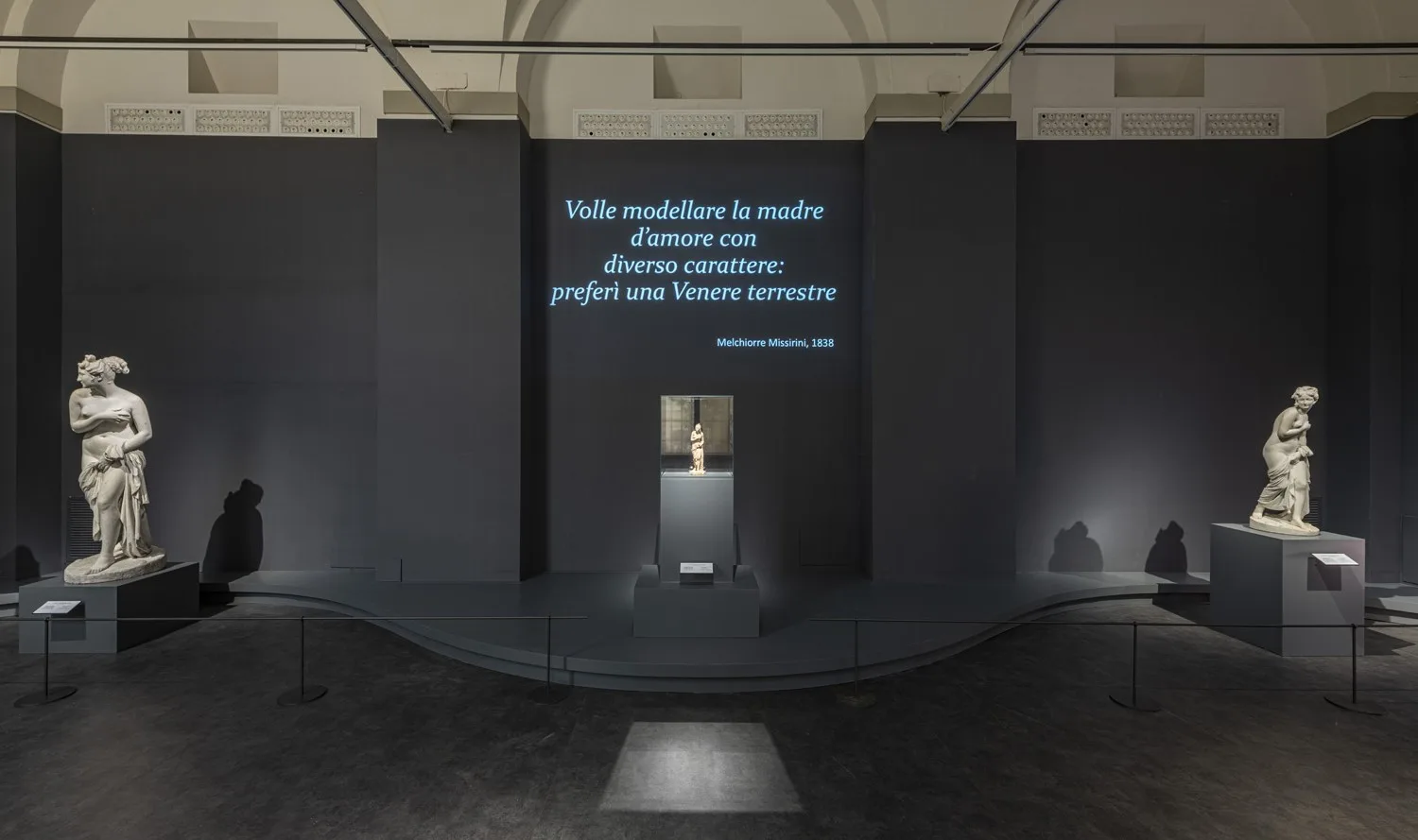 Al centro della mostra, il bozzetto preparatorio in terracotta, recentemente acquisito dal museo, affiancato al modello in gesso proveniente dall’ Accademia di Belle Arti di Firenze, e alla replica in marmo realizzata dall’artista per il conte Fabio Orlandini tra il 1836 e il 1838 ca.