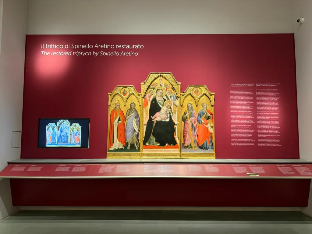 Il trittico di Spinello Aretino raffigurante la Madonna col Bambino in trono e quattro angeli fra i santi Paolino vescovo, Giovanni Battista, Andrea, Matteo, e i Profeti Geremia e Mosè nei tondi superiori, torna a splendere nella Galleria dell’Accademia di Firenze, dopo un importante intervento di restauro, avviato nel novembre 2024 e appena concluso, accompagnato da una completa campagna di indagini diagnostiche. I risultati e l’opera saranno al centro di un’esposizione dedicata, allestita nelle sale del primo piano riservate alla pittura fiorentina del Tardo Trecento, visitabile dal 24 febbraio all’11 maggio 2026.