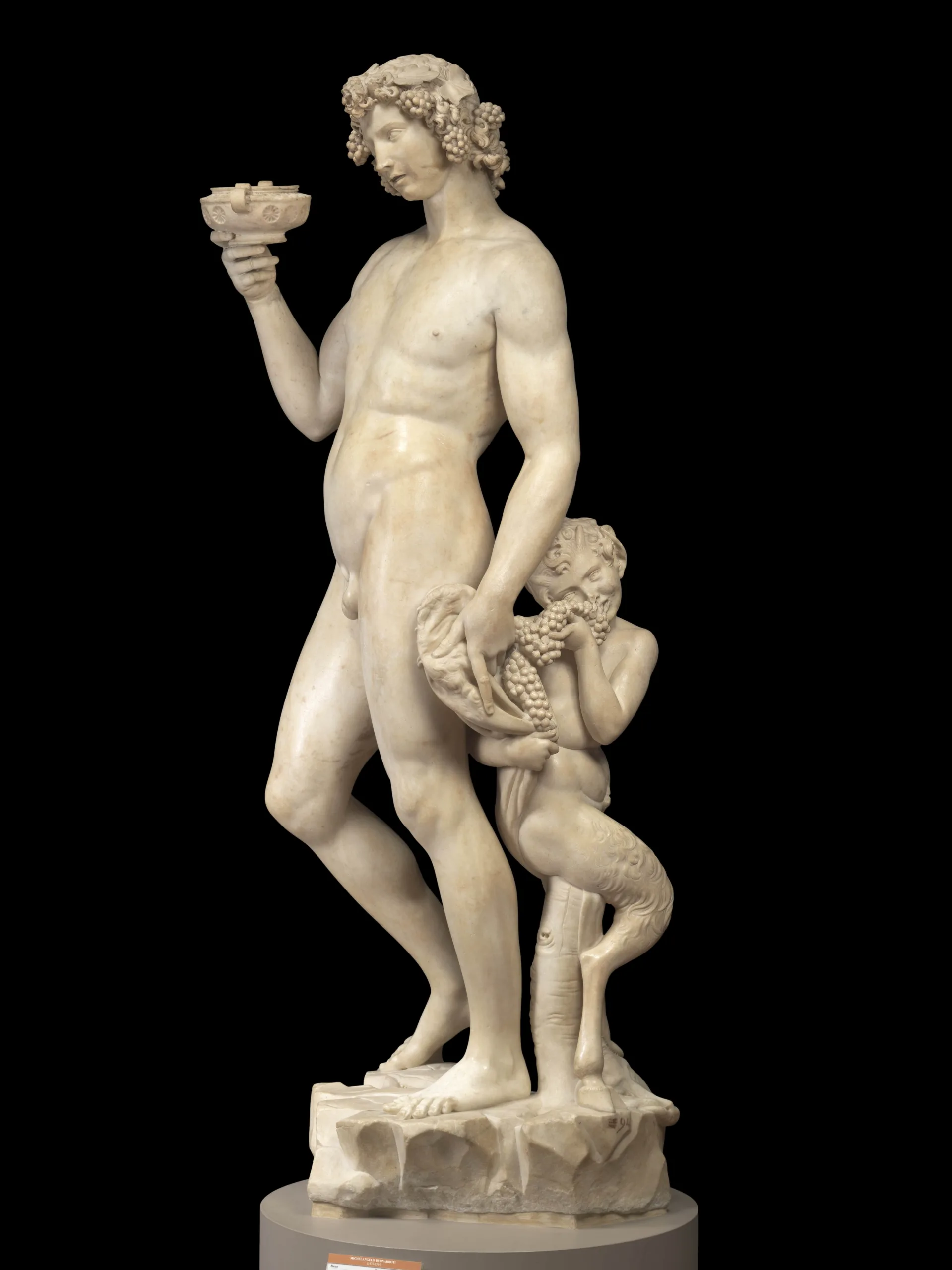Il Bacco, raffigurato nelle sembianze di un adolescente, esprime nelle forme del corpo quella perfezione classica ispirata alle statue ellenistiche che Michelangelo aveva studiato durante il suo primo soggiorno romano.