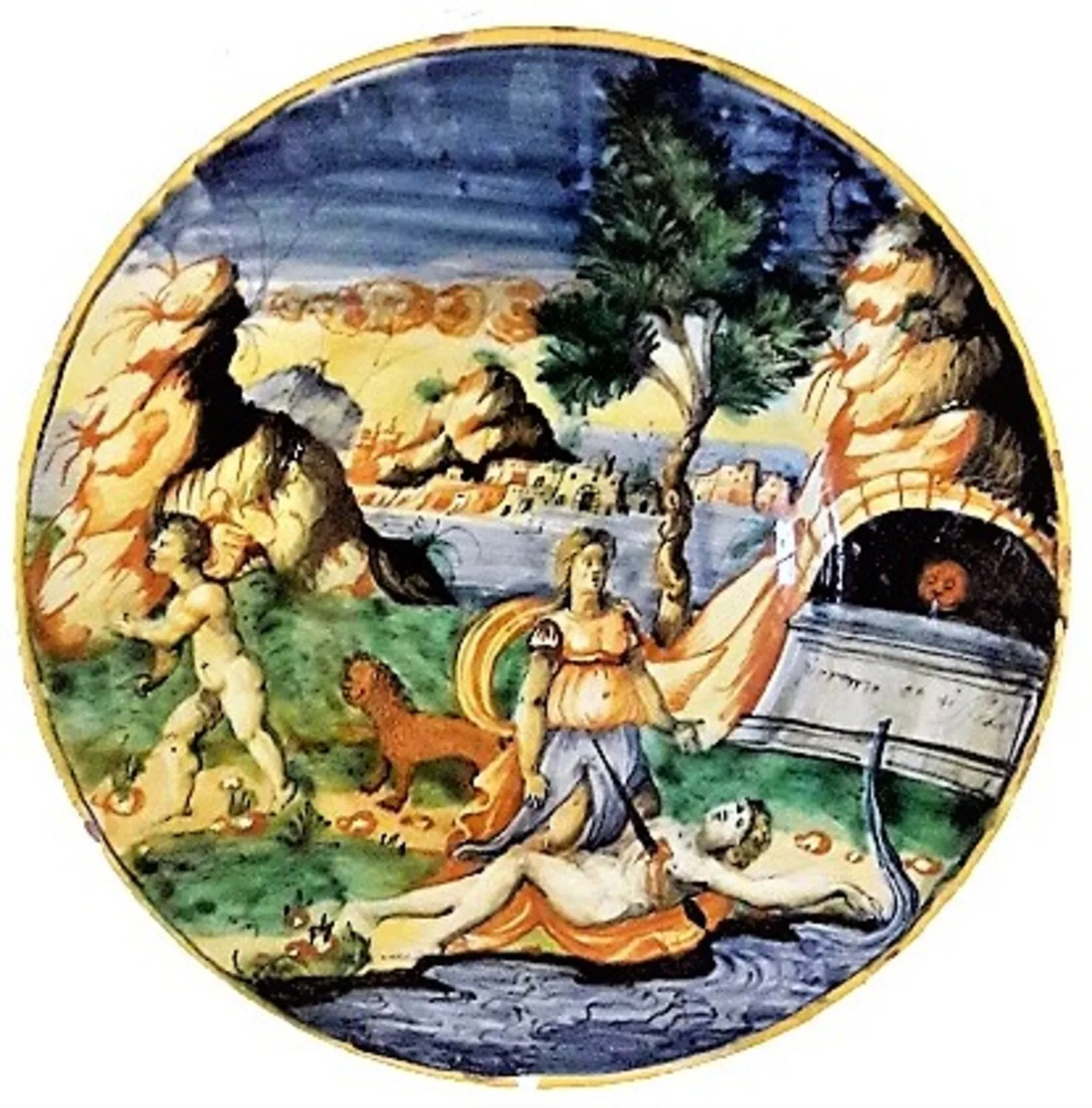 Il medaglione, raffigurante la Crocifissione, fa coppia con un altro raffigurante l’Incoronazione e la Vergine tra due sante (NCTN 09 00286888). Una scheda dattiloscritta ricorda questi due avori montati insieme, entro una cornice metallica con due placche convesse di cristallo. Si ignora quando essa venne tolta: Supino (1898) non la descrive, ma si riferisce ai due avori come a un “medaglione a placche circolari”; nel 1924 Koechlin le descrive nello stato attuale. I due tondi eburnei appartengono a un nutrito gruppo di micro-sculture, ricondotto a più botteghe attive nella produzioni di simili intagli che potevano costituire dittici devozionali, medaglioni o potevano essere inseriti in oreficerie.Quanto all’origine di tali rilievi, dapprima ritenuti di produzione franco-fiamminga (Rasmussen 1977), sono ora considerati opere parigine delle prime due decadi del XV secolo (cfr. Chiesi in Ciseri 2018, p. 271, con bibl. prec.). Il medaglione con la Crocifissione può venir confrontato con quello raffigurante sempre la Crocifissione del Museum Schnütgen di Colonia (inv. B 144), paragonabili per stile, composizione e particolari: “sono pressoché sovrapponibili i racemi vegetali, il tipo di Cristo muscoloso dal corto perizoma annodato sull’inguine e i capelli che ricadono sulle spalle in una ciocca unica, la posizione della Maddalena, le aureole raggiate e la resa del suolo a montagnole” (Ivi, p. 271)