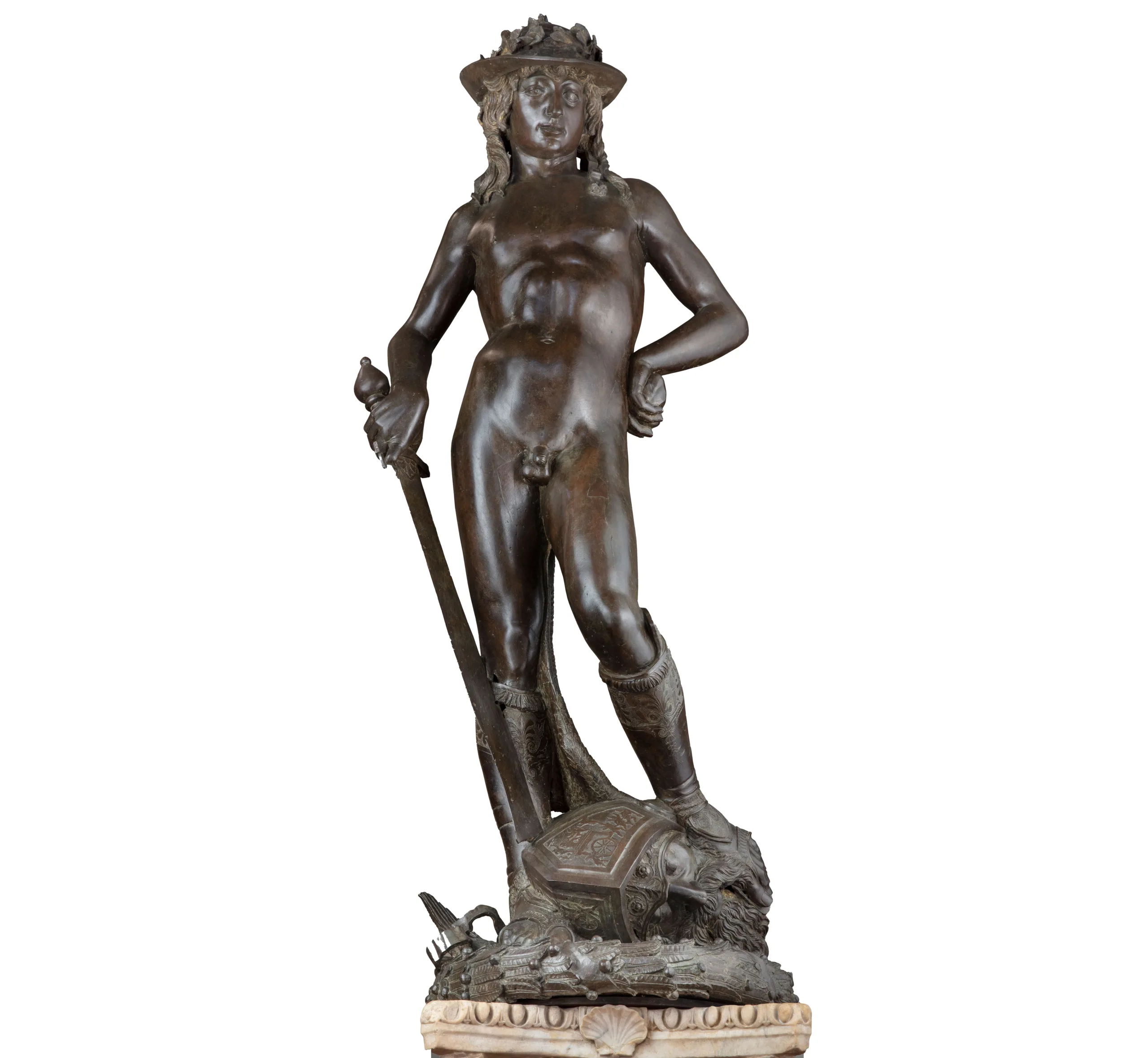 Caglioti, nel catalogo “Donatello. Il Rinascimento” (2022), fissa l’esecuzione della scultura tra il 1435 e il 1440, riconoscendo nella tecnica metallurgica “antiquaria” del maestro affinità con gli Spiritelli Jacquemart-André (1436–1438 circa). Un restauro eseguito tra il 2007 e il 2008 ha rivelato tracce di doratura sui capelli, sui nastri, sulla nappa e sulle foglie di alloro del cappello, sui calzari, sulle ali e sul fronte dell’elmo di Golia (cfr. Nicolai in Donatello. Il Rinascimento 2022).