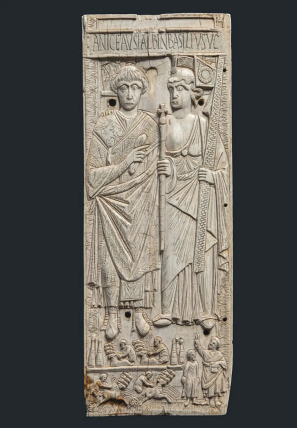 | Tecnica | avorio di tricheco/ incisione, intaglio, osso/ intaglio, pittura, legno, stoffa, pergamena/ pittura |