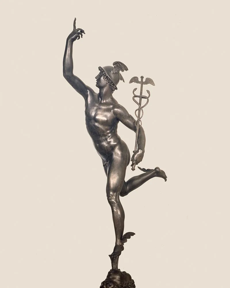 Il committente scelse il soggetto consapevole che sarebbe stato gradito a Massimiliano II, il quale in gioventù amava richiamarsi al mitico Mercurio come a un proprio antenato. La statua del Bargello ha suscitato varie interpretazioni sull’epoca di esecuzione, a causa di un difetto di fusione che interessa la fiancata sinistra della scultura.