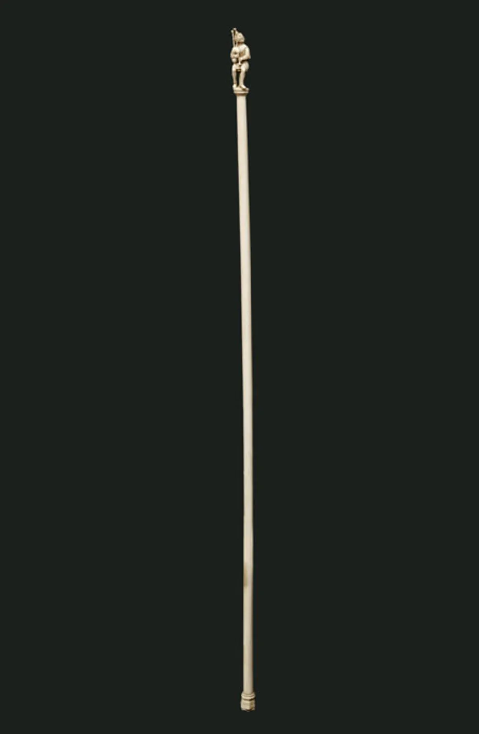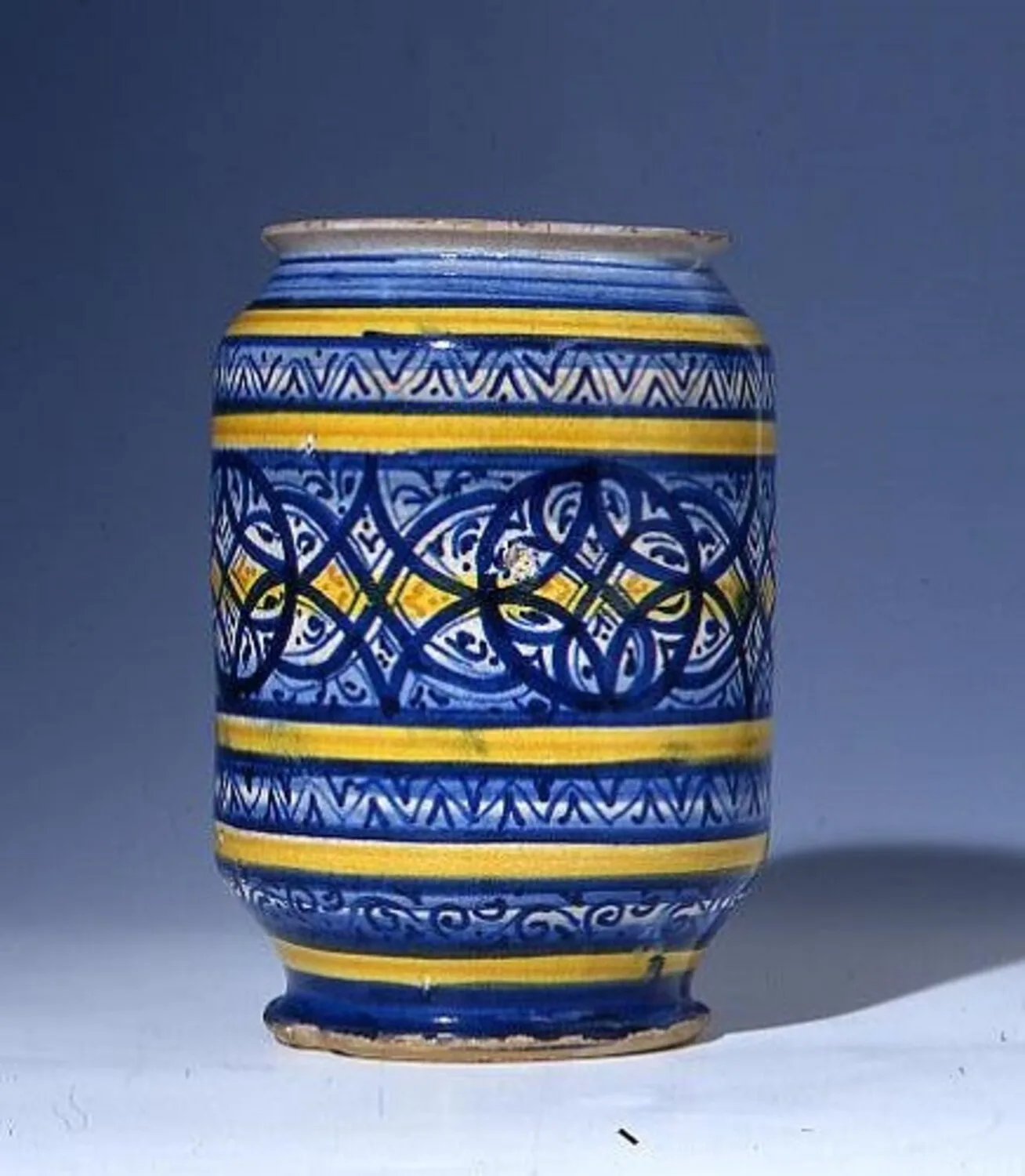 Il piatto fa parte di una serie che, rifacendosi a un gruppo di incisioni di Antonio Tempesta, illustra le gesta di Alessandro in Asia; tale produzione esiste in più varianti dalle quali emerge l’operosità della fabbrica di Francesco Grue. L’incisione di Tempesta presa a modello è quella detta di “Alessandro in India” e viene trascritta dal pittore con una certa fedeltà nella riproduzione delle figure ma con grande libertà nell’immaginazione dello sfondo, della città e della folla di personaggi che la popola. Un esemplare molto simile, presente al Museo Nazionale di Palazzo Venezia (Polidori 1949, tav.7) a Roma, potrebbe avere un’origine pressoché coeva, forse addirittura attribuibile a una stessa mano. La tesa con trofei è basata sull’unione di armi come spade e scudi, legati insieme a strumenti a fiato e a percussione, dove ogni scudo contiene un’immagine antropomorfa: ciò è una caratterizzazione di Francesco Grue e contribuisce a rivelarne l’autografia anche quando si accompagna a scene di differente soggetto.