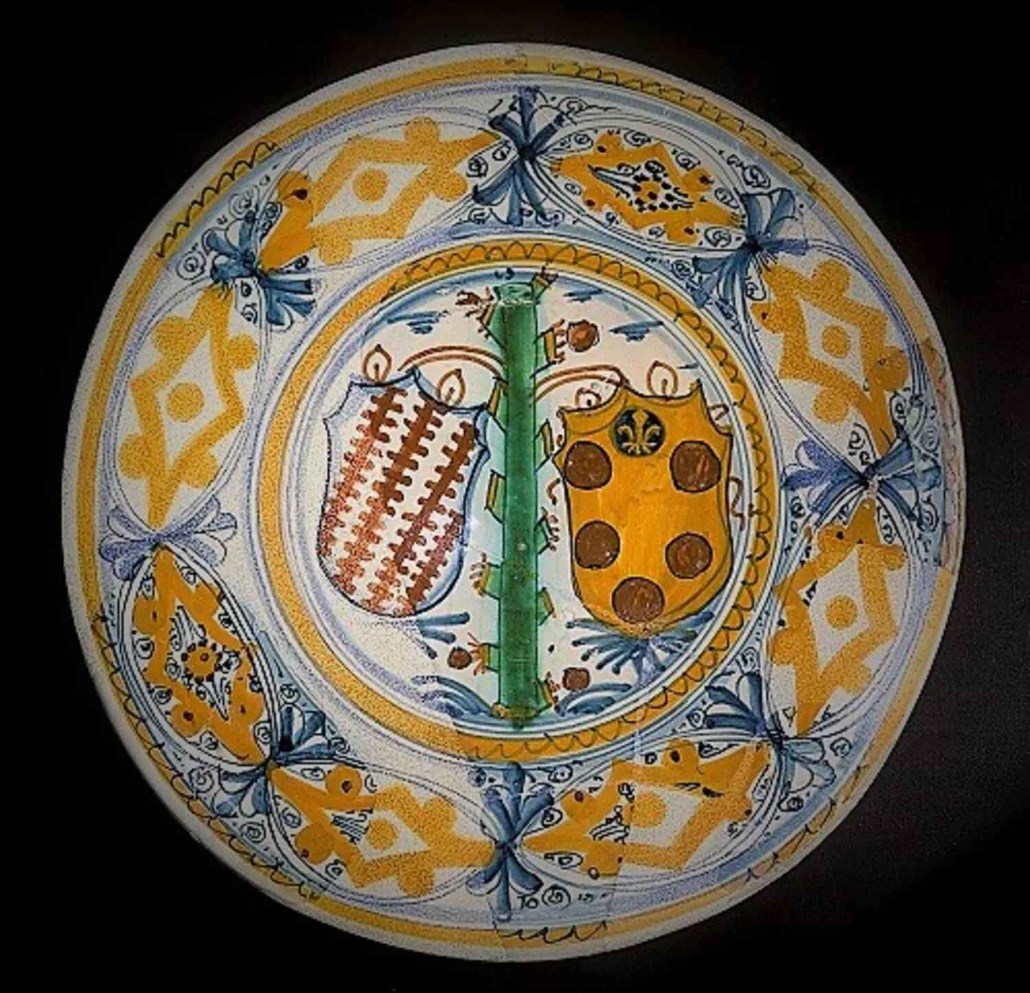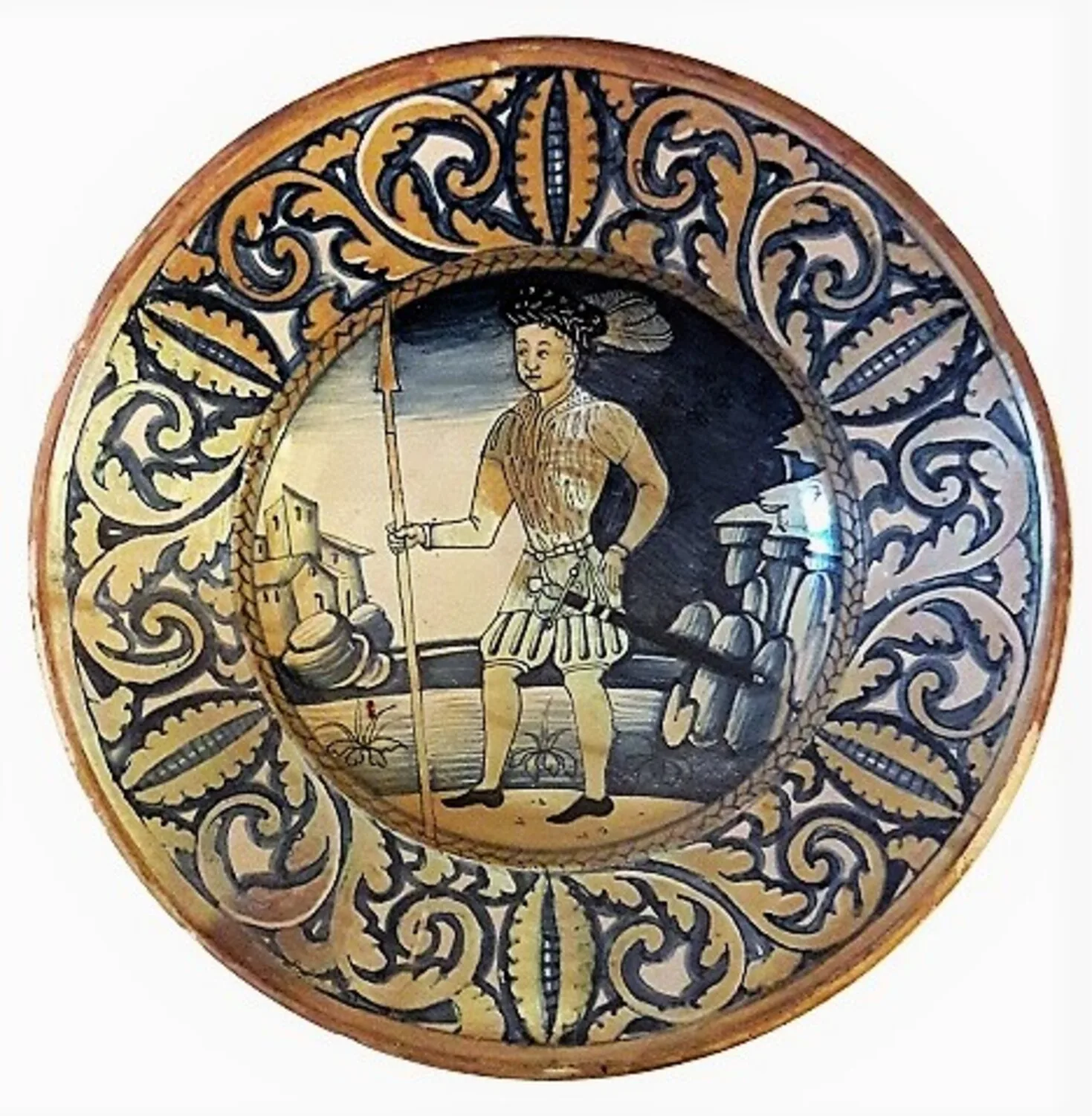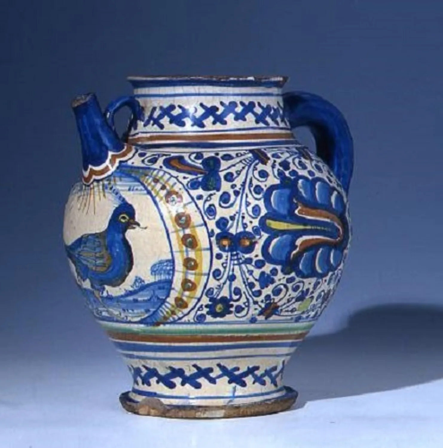 Il vaso mostra una certa eleganza nella curvatura delle anse e nell’ampio sbocciare del collo in una bocca che, un tempo, era dotata di coperchio; il pannello con il busto femminile, poi, ricorda, nei tratti e nella realizzazione, un cammeo. Questa tipologia di vasi non risulta rara: al Musée du Louvre di Parigi ve ne sono diversi, per lo più decorati con un busto di donna, doni del genere “amatorio” che i fidanzati offrivano alle fidanzate. Se ne conoscono anche con busti maschili, spesso laureati, sullo schema delle figure imperiali e, in questo caso, il simbolismo è orientato verso l’evidenziazione delle virtù civiche e umane. Uno dei vasi del Louvre reca, nello specifico, un cuore trafitto da due frecce di cui non si discute il chiaro significato sentimentale; lo stesso si può dire di un altro vaso, presente nella medesima raccolta, dove si trova la scritta “FELICE” (Giacomotti 1974, pp.195-196, nn. 632, 634). Vasi simili vengono datati entro la prima metà del XVI secolo.